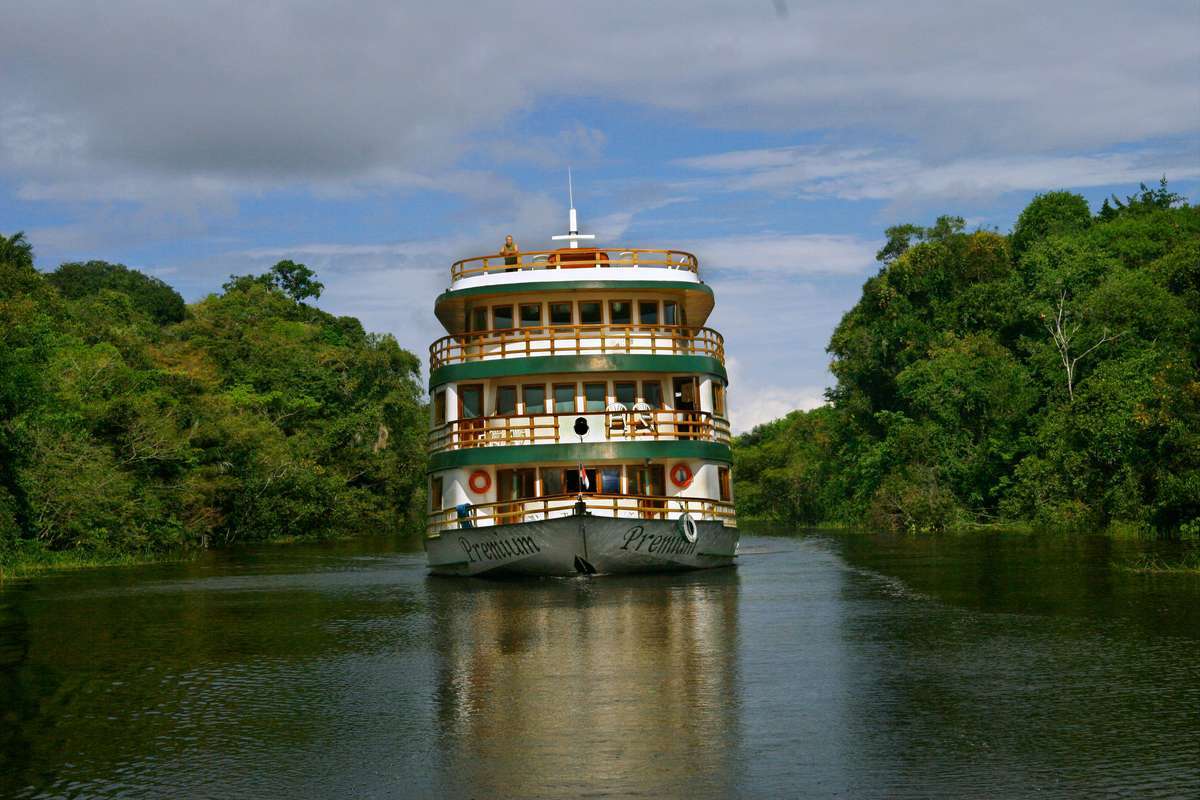 Le Premium Clipper fait partie des bateaux typiques naviguant sur l’Amazone. Grâce à leur faible tirant d’eau, ils peuvent également s’enfiler dans les plus petits canaux du fleuve mythique. Les excursions en canot motorisé vous permettent de découvrir la faune et la flore luxuriante de la région et de se faire une idée de la vie qui se déroule au bord du fleuve. L’endroit le plus beau à bord est le vaste pont-soleil et d’observation qui permet d’admirer la vue panoramique sur le paysage qui défile devant vos yeux.