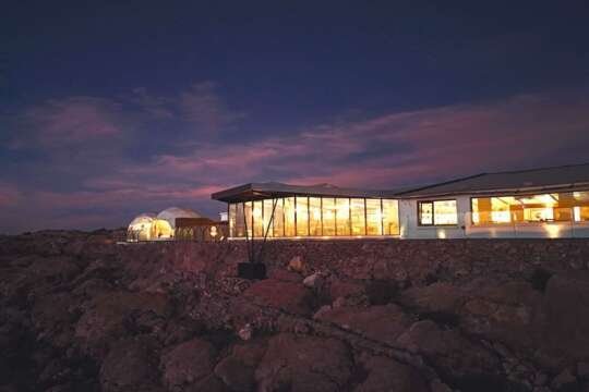 15 einfache, aber liebevoll eingerichtete Cottages, im landestypischen Stil erbaut, aus Lehmziegeln und mit Strohdächern bedeckt. Alle mit Sicht auf den Titicaca-See und die Königskordillere (Cordillera Real) der Anden. Weiter verfügt die Lodge über ein Restaurant. Heisses Wasser und Heizung durch Solarenergie.