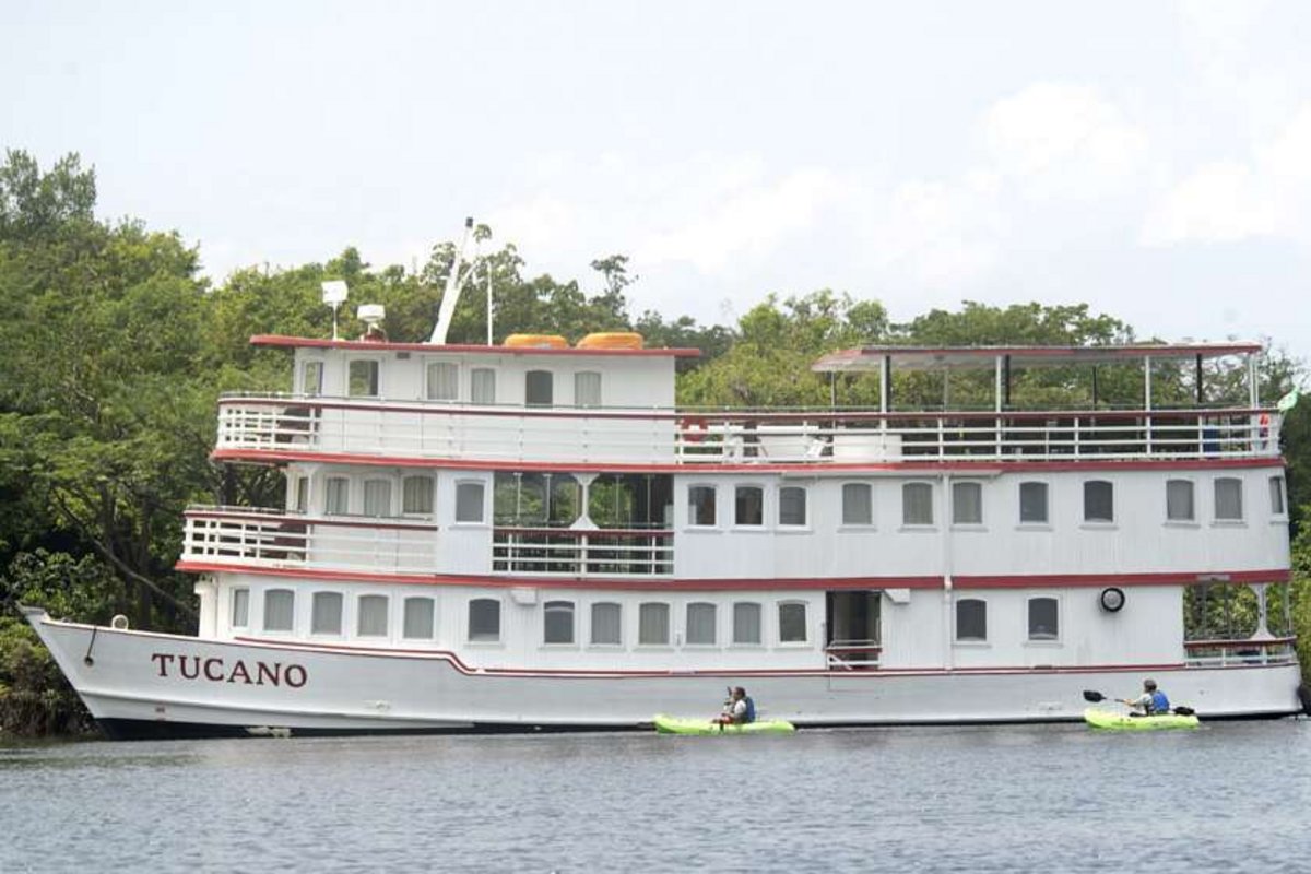 Willkommen an Bord! 76 grosse Fenster sind auf der im Stil der Dampfboote des späten 19. Jh. erbauten Tucano zu finden. 76 Fenster, die sich trotz Klimaanlage öffnen lassen und die den Zauber der Amazonasregion ins Schiff bringen. An Bord wird fürsorglich für das leibliche Wohl gesorgt, der Fokus liegt bei der Flussfahrt auf der Tucano aber auf den Ausflügen. Die verschiedenen Wanderungen, Kajak-Ausflüge und Bootsfahrten in den Urwald sollen eine echte und authentische Erfahrung ermöglichen und unvergessliche Erlebnisse schaffen.