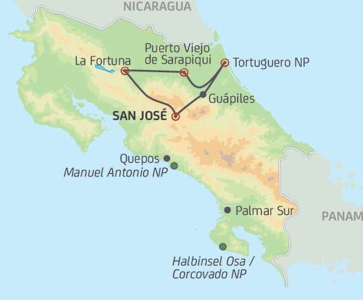 Costa Rica wird auch die Schweiz Mittelamerikas genannt. Die gebirgige Landschaft, die Neutralität und der relative Wohlstand sind alles Faktoren, durch welche das kleine Land zu seinem Beinamen kam. Ebenso vielfältig sind aber auch die Unterschiede. Regen- und Nebelwälder, Traumstrände und Vulkane, Sümpfe und Mangroven, exotische Tiere und betörende Pflanzen. In Costa Rica ist zudem das Glück zu Hause. Die Bevölkerung wurde im Happy Planet Index bereits mehrere Male als die Glücklichste der Welt bewertet. Auch den Besucher macht Multitalent Costa Rica glücklich: ob abenteuerlustige Entdecker, genussfreudige Honeymooners oder wissbegierige Naturfans; mit ihrer unglaublichen Vielfalt beglückt die Schweiz Mittelamerikas hoffentlich auch bald schon Sie!