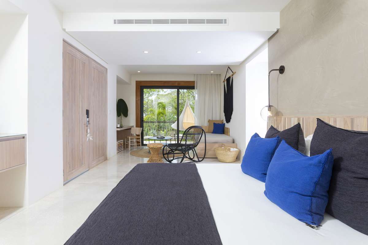 Die eleganten Suiten und Bungalows besitzen alle einen Balkon oder Terrasse, TV und Minibar, einige mit direktem oder seitlichem Meerblick. Einige Bungalows haben sogar einen eigenen Plunge-Pool. Das Hotel bietet einen schönen Pool im Zentrum der Anlage und ein ausgezeichnetes Restaurant.