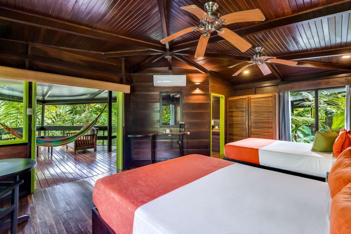 Komfortable, wunderschön in der Natur eingebettete Zimmer in sieben verschiedenen Kategorien. Alle Zimmer verfügen über Klimaanlage, Kaffeemaschine, Safe, Terrasse, WiFi und teilweise Whirlpool oder Hängematte. Zur Infrastruktur gehören ein offenes Restaurant mit authentischer Küche, wofür meist Zutaten aus eigenem Anbau gwählt werden, Swimmingpool, Thermalbäder, ein Tour Desk sowie Wanderwege im privaten Regenwaldreservat.