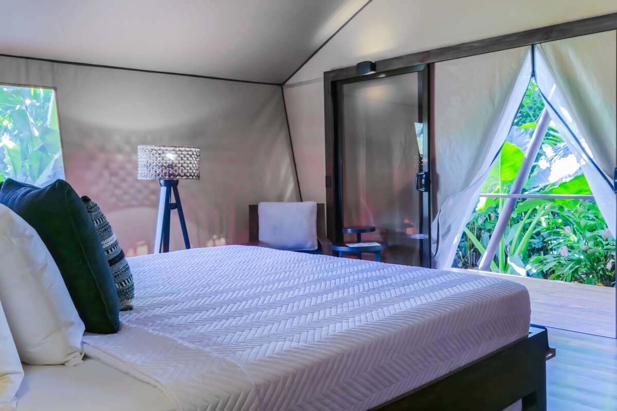 Komfortable Zelte, die von lokalen Kunsthandwerkern entworfen wurden, fügen sich nahtlos in die Umgebung ein und bieten elegante Unterkünfte mit privaten Terrassen, die sich zu üppigen tropischen Gärten hin öffnen. Ein harmonisch in die Landschaft eingebetteter Pool sowie ein Restaurant und eine Bar runden das Angebot ab.