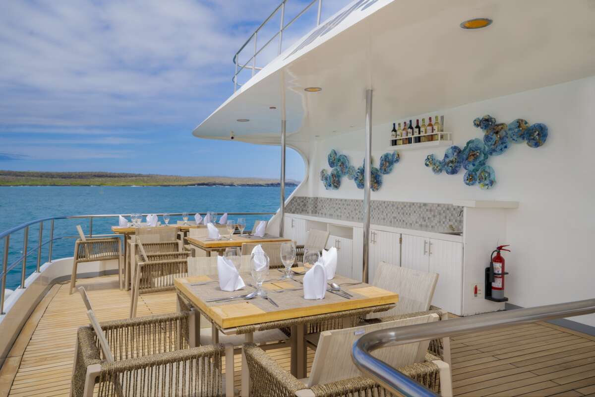Dieser grosszügig, modern gestaltete Motorkatamaran bietet ein ganz besonderes Galapagos-Erlebnis, welches nach den höchsten Standards für die Navigation gebaut wurde. Geniessen Sie ein elegantes Erlebnis, eine köstliche Küche verbunden mit einem persönlichen Touch. Erstklassige Naturguides und ein guter Service runden dieses einmalige Abenteuer ab.