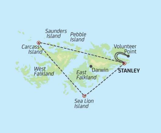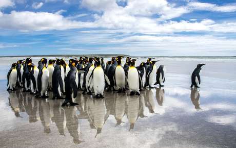 Ein unglaubliches Naturparadies, welches oft nur bei einem Zwischenstopp während einer Antarktis-Kreuzfahrt kurz besucht wird. Es lohnt sich aber, hier zu verweilen und die einzigartigen Inseln und deren grossen Charme mit genügend Zeit zu entdecken. Eine kleine Inselgruppe mit einer grossen Vergangenheit, von den einen Falkland-Inseln, von den anderen Islas Malvinas genannt. Ein Tintenklecks am Ende der Welt resp. etwa 480 km vor der patagonischen Küste Argentiniens. Knapp 2500 Menschen teilen sich dieses Fleckchen Erde mit etwa 600 000 Schafen, 350 000 wildlebenden Gänsen und einer riesigen Anzahl Seelöwen, See-Elefanten, Pinguinen und diversen Vogelarten. Weisse Sandstrände schmiegen sich an schroffe Klippen, die in eine hügelige Graslandschaft übergehen. Wer hier spazieren geht, kann gut und gerne mal auf einen riesigen, grunzenden See-Elefanten stossen, welcher sich faul in der Sonne räkelt. Die Pinguine bieten ein lebhafteres Schauspiel. Geschäftig watscheln sie am Strand entlang und bringen Leben in das stille Bild der Landschaftskulisse. Stanley, die Hauptstadt der Falkland-Inseln, erwartet die Reisenden mit weiss gestrichenen Häusern, farbigen Dächern und bunt blühenden Gärten. Die liebenswürdigen Inselbewohner empfangen ihre Besucher mit einer wohltuenden Herzlichkeit. Nichts wie hin, um das einzigartige Naturwunder selbst zu entdecken!