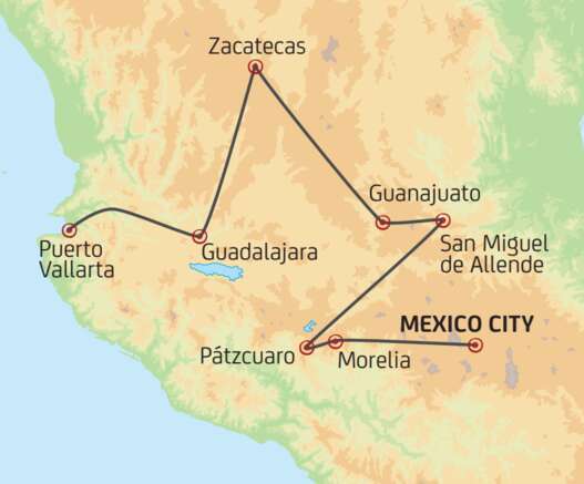 In Mexiko erwartet Sie ein Festival der Sinne: entdecken Sie karge Wüstenlandschaften und farbige Unterwasserwelten, weite Ebenen und tiefe Schluchten sowie tropischen Regenwald und schneebedeckte Vulkankegel. Tauchen Sie ein in die vielfältige mexikanische Küche und probieren Sie Köstlichkeiten wie Tacos, Tamales und Guacamole, begleitet von einem Tequila, sei dies pur oder als Margarita-Cocktail. Lauschen Sie den Klängen der Mariachi-Musik und lassen Sie sich berauschen vom Feuerwerk der Farben, welches sich im Kunsthandwerk widerspiegelt. Als Schlussbouquet dieses Tanzes durch den vielfältigen Staat bietet sich ein Aufenthalt am Strand an: strahlend weisse Sandstrände und kristallklares Wasser laden zum Entspannen ein.