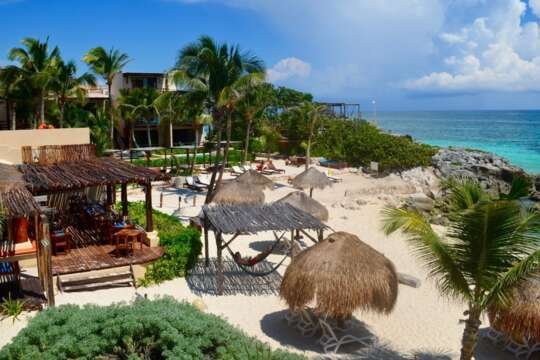 Direkt am atemberaubenden Xpu-Ha-Strand. Das Zentrum von Playa del Carmen mit zahlreichen Restaurants und Einkaufsmöglichkeiten ist 28 km, der Flughafen Cancun 84 km entfernt. Hinweis: Je nach Saison können vermehrt Braunalgen auftreten.