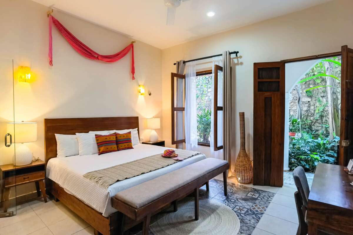 Das Hotel Le Muuch ist ein stilvolles Boutiquehotel im historischen Zentrum von Valladolid. Gäste geniessen individuell gestaltete Zimmer mit lokalen Kunstwerken, entspannen am Pool im tropischen Innenhof oder auf der Dachterrasse mit Lounge und Blick über die Stadt. Die zentrale Lage ist ideal, um die koloniale Altstadt, bunte Märkte, Cenoten und Maya-Ruinen zu entdecken. Ein Ort, der Komfort, Design und authentisches Yucatán-Flair verbindet.